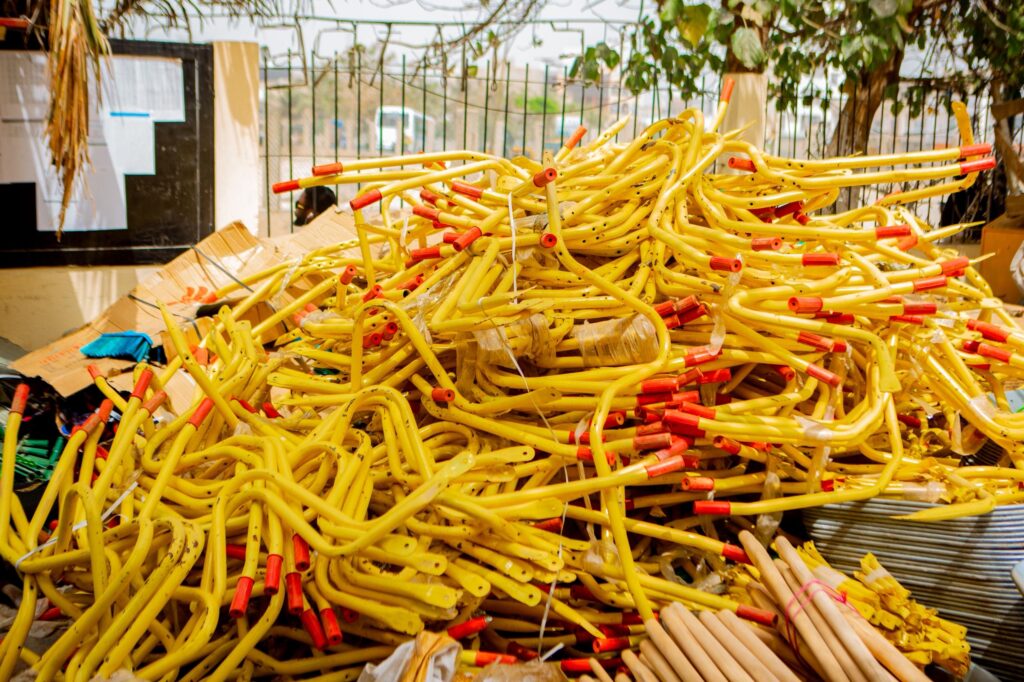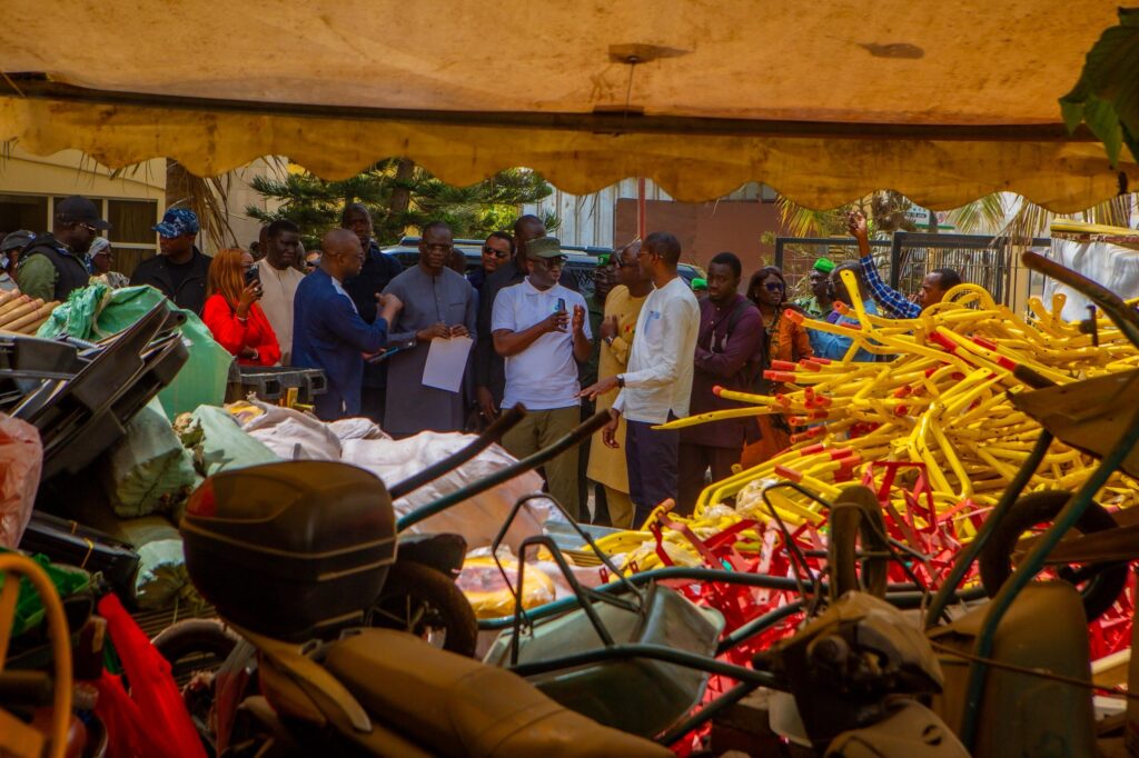 L’un des acquis majeurs demeure la structuration du Rรฉseau des Acteurs Locaux pour la Santรฉ Environnementale (RALSEN). Comme vous pouvez le voir, mous rรฉceptionnons aujourdโhui des motos du matรฉriel de nettoiement et du matรฉriel informatique. Ces outils permettront au RALSEN, vรฉritable bras opรฉrationnel de la Mairie, d’assurer un suivi rapprochรฉ de la gestion des dรฉchets et de faciliter les opรฉrations de dรฉsensablage et de nettoyage communautaire.